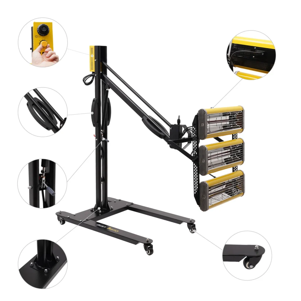 Con tecnología avanzada de onda corta infrarroja y diseño ajustable multiángulo, esta lámpara profesional para hornear pintura puede lograr un secado rápido de la pintura, mejorando en gran medida la eficiencia de trabajo. Asegura que la superficie de la pintura se calienta uniformemente, presentando un impecable efecto de horneado. Puede regular con precisión la temperatura de trabajo para evitar el sobrecalentamiento o desigual que resulte en defectos en la superficie de la pintura, protegiendo eficazmente la calidad de la superficie de la pintura. ¡Elígelo para que tu pintura funcione más tiempo, ahorre mano de obra y ahorre preocupaciones, y logre una excelente calidad!